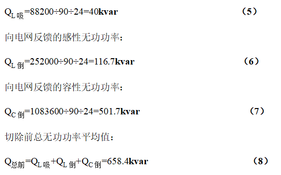 根據(jù)表一數(shù)據(jù),計(jì)算切除電容器前進(jìn)線413間隔各種無功功率平均值為: