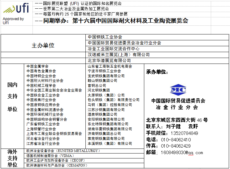 主辦方聯(lián)系人;中國國際貿(mào)易促進(jìn)委員會冶金行業(yè)分會 劉子健 13520784849