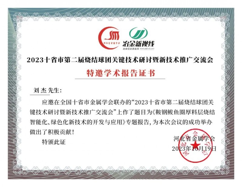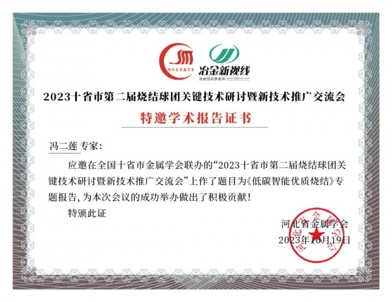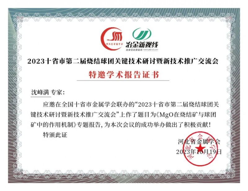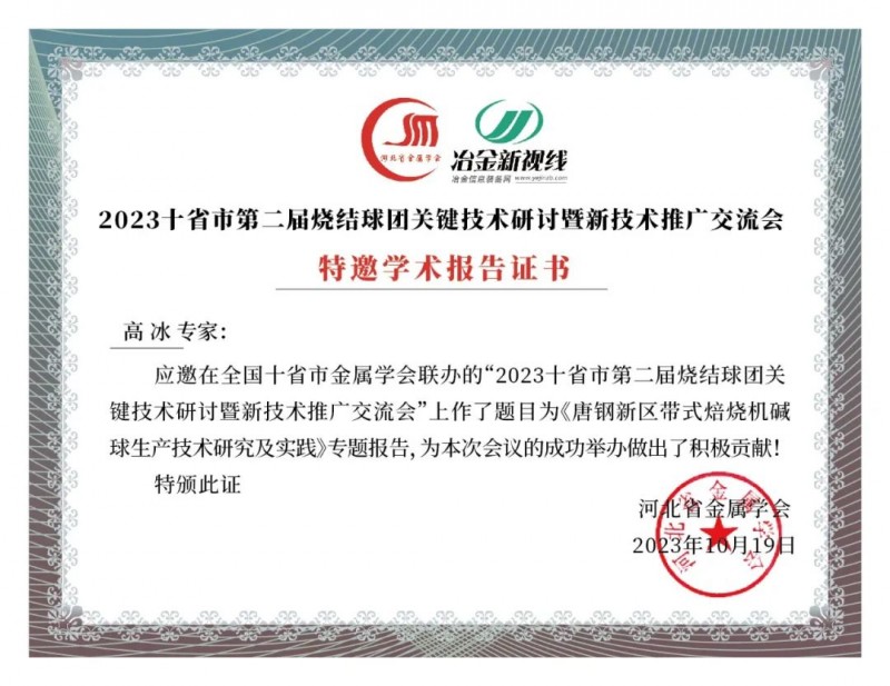 2023年10月18日至20日,河北省金屬學(xué)會(huì)、唐山市鋼鐵工業(yè)協(xié)會(huì)、唐山市科協(xié)聯(lián)合遼寧、北京、天津、安徽、山東、四川、河南、江蘇、陜西等省市金屬學(xué)會(huì)在河北唐山舉辦了2023年十省市第二屆燒結(jié)球團(tuán)關(guān)鍵技術(shù)研討暨新技術(shù)推廣交流會(huì)。