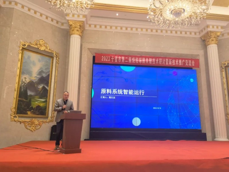 晉鋼控股集團(tuán)燒結(jié)廠生產(chǎn)科長(zhǎng)程文龍作《原料系統(tǒng)智能運(yùn)行》主題報(bào)告