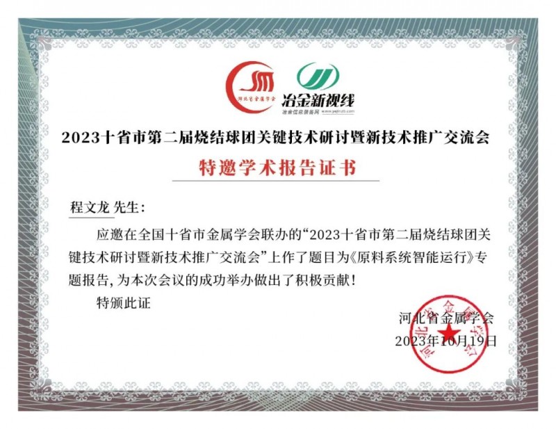 熱烈祝賀2023年十省市第二屆燒結(jié)球團(tuán)關(guān)鍵技術(shù)研討暨新技術(shù)推廣交流會(huì)圓滿結(jié)束