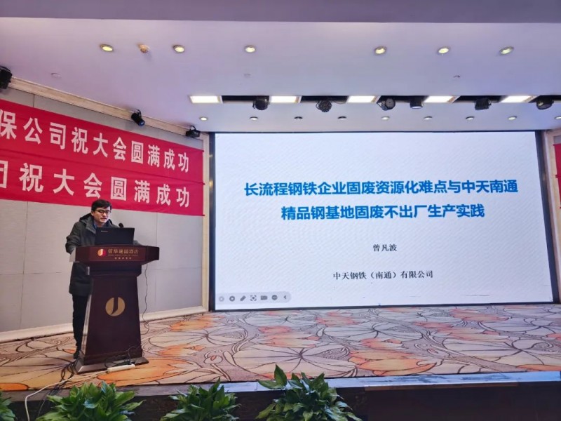 中天鋼鐵(南通)新材料科技有限公司副總經(jīng)理曾凡波作《長(zhǎng)流程鋼鐵企業(yè)固廢資源化難點(diǎn)與中天南通精品鋼基地固廢不出廠生產(chǎn)實(shí)踐》主題報(bào)告