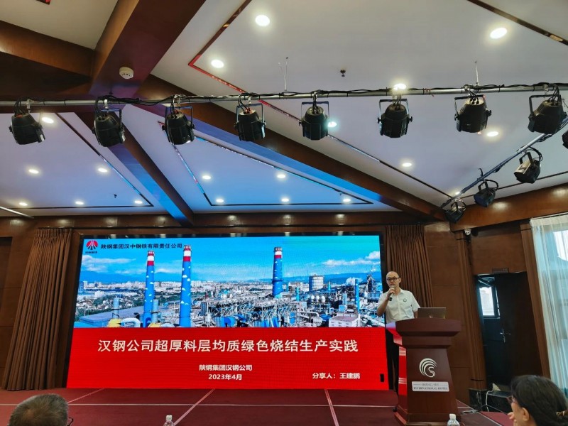 陜鋼集團(tuán)漢中鋼鐵有限責(zé)任公司燒結(jié)廠副廠長王建鵬作《漢鋼公司超厚料層均質(zhì)綠色燒結(jié)生產(chǎn)實(shí)踐》主題報告