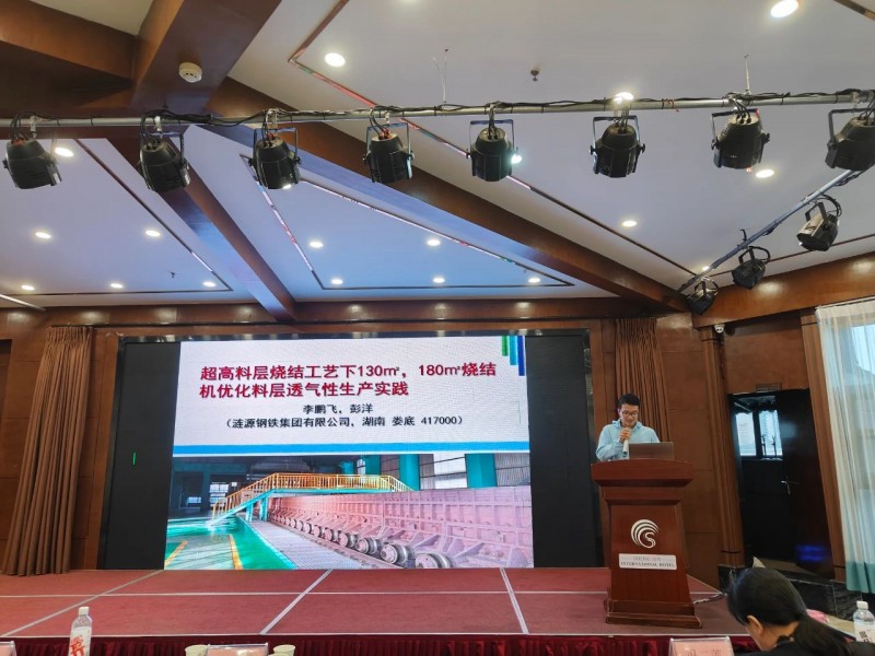 漣源鋼鐵集團(tuán)有限公司燒結(jié)主任李鵬飛作《超高料層燒結(jié)工藝下130㎡,180㎡燒結(jié)機(jī)優(yōu)化料層透氣性生產(chǎn)實(shí)踐》主題報告