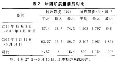 4 .1 球團(tuán)礦質(zhì)量改善情況對比
