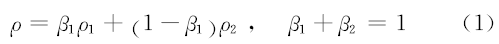 特性參數(shù)在每一控制體內(nèi)由多種流體的體積函數(shù)組合而成,以2種流體為例,流體用下標(biāo)1和2區(qū)分,β1是第1種流體的體積分?jǐn)?shù),β2是第2種流體體積分?jǐn)?shù);ρ1和ρ2分別為2種流體的密度,那么單元體密度ρ可表示為: