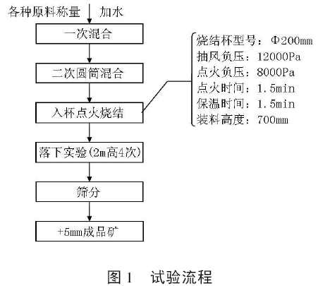 燒結(jié)杯試驗流程及試驗參數(shù)如圖1 所示。