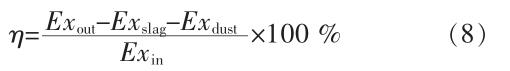 高爐冶煉過(guò)程的熱力學(xué)完善度被定義為工藝過(guò)程的火用輸出和火用輸入之比: