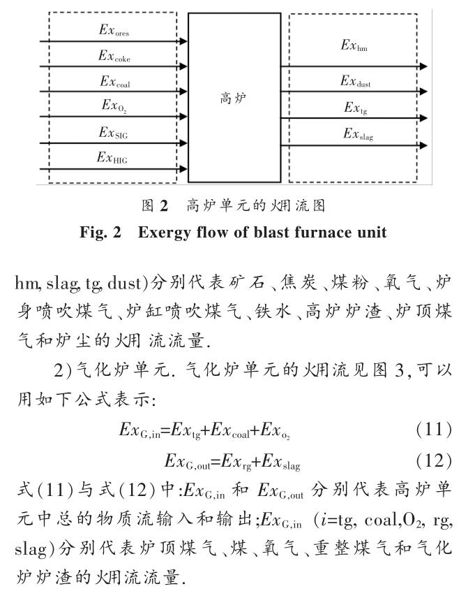 1 )高爐單元.高爐單元的火用流見圖2,可以用如下公式表示