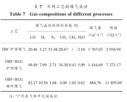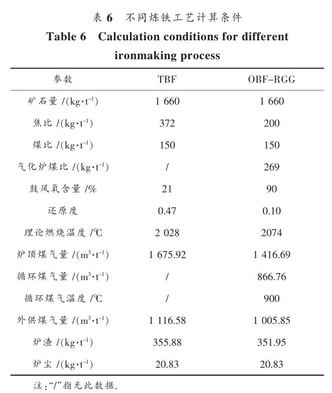 在此模型中 , 傳統(tǒng)高爐( TBF )和氧氣高爐噴吹氣化爐重整煤氣工藝( OBF-RGG )的計(jì)算條件列于