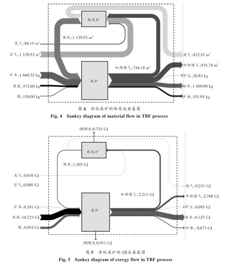 平衡和能量平衡的分析模型;張偉等[19]對(duì)TGR-OBF工藝進(jìn)行了火用流建模,并對(duì)傳統(tǒng)高爐和氧氣高爐進(jìn)行火用分析.