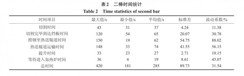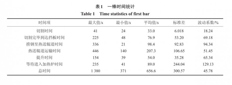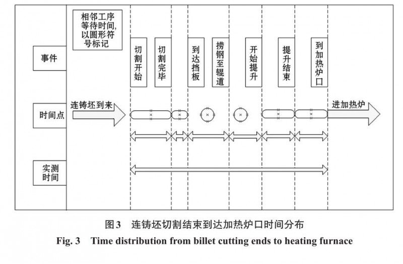 圖3所示為連鑄坯切割結(jié)束到達加熱爐口時間分布圖,記錄了鑄坯從切割結(jié)束到進加熱爐之前所經(jīng)過的工序。
