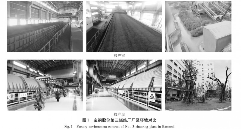環(huán)保技術(shù)應(yīng)用近一年來,設(shè)備穩(wěn)定運(yùn)行,粉塵污染基本根除,主要廢氣排放指標(biāo)均遠(yuǎn)低于國家標(biāo)準(zhǔn),環(huán)保指標(biāo)達(dá)到國際領(lǐng)先水平。環(huán)保技術(shù)投產(chǎn)前后燒結(jié)廠區(qū)對比如圖 1 所示。
