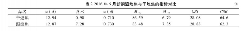 新鋼濕熄焦與干熄焦的主要經(jīng)濟技術(shù)指標見表 2。