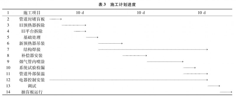 本工程涉及專業(yè)多,設備結(jié)構(gòu)體積大,單元設備重量重,現(xiàn)場焊接量非常大,施工工期短,作業(yè)場地窄小,施工質(zhì)量要求高。電氣、通訊設施施工要同時進行,其控制技術(shù)難度高。在整個工程施工過程中,各方均要密切做好協(xié)調(diào)工作以確保 30 d 的工期。施工前根據(jù)項目特點編制施工計劃進度表,科學安排施工順序,合理組織各專業(yè)的交叉作業(yè),落實安全設施并做好安全工作,以保證該工程各項目標的實現(xiàn)。施工計劃進度表見表 3。