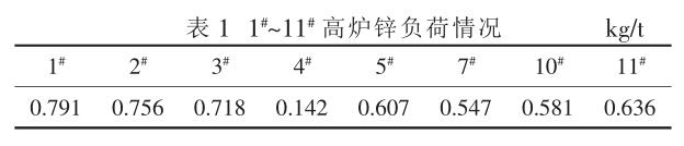 1 高爐鋅負荷基本情況