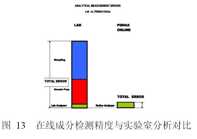 傳統(tǒng)實(shí)驗(yàn)室分析方法的誤差一般是在線成分檢測(cè)的一半,但大量的誤差發(fā)生在取樣和制樣環(huán)節(jié)。在線成分檢測(cè)沒(méi)有取樣和制樣誤差,因此其總體測(cè)量精度比傳統(tǒng)實(shí)驗(yàn)室分析方法精度要高得多。在線成分檢測(cè)精度與原料中含有哪些元素、各元素含量、皮帶載荷、探測(cè)器數(shù)量、中子源總量等因素息息相關(guān),具體的精度需要根據(jù)各廠情況獨(dú)立標(biāo)定。