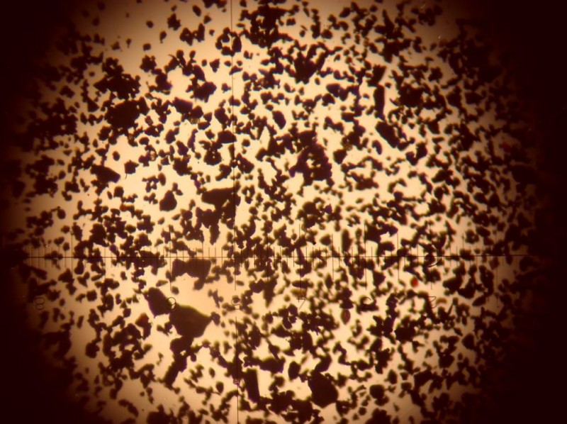 如圖2所示,10μm以下瓦斯灰在光學顯微鏡下觀察到的片狀不規(guī)則形貌,在顯微鏡中還可以觀察到比重較小的焦炭顆粒,同時也可以觀察到半透明的氧化鋅晶體顆粒。