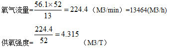 實際耗氧量體積=56.1(NM3/T鐵水)