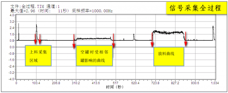 ④通過比較兩組曲線的振動值的幅值范圍及放料時間可以區(qū)分料罐內的材料