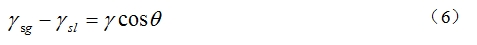表面張力通過(guò)潤(rùn)濕角影響鐵水侵蝕炭磚過(guò)程。潤(rùn)濕角反應(yīng)了鐵水與炭磚的潤(rùn)濕性,潤(rùn)濕角越小,潤(rùn)濕性越好。潤(rùn)濕角與氣體和炭磚的界面張力、鐵水和炭磚的界面張力以及鐵水表面張力有關(guān)。用楊氏方程來(lái)表示這三個(gè)力與潤(rùn)濕角之間的關(guān)系[25]: