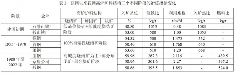 2.1 建國以來爐料結(jié)構(gòu)發(fā)展的三個不同階段數(shù)據(jù)與評述