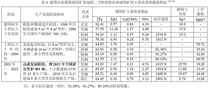 2.2 我國燒結(jié)礦、球團(tuán)礦生產(chǎn)發(fā)展的三個階段數(shù)據(jù)與評述