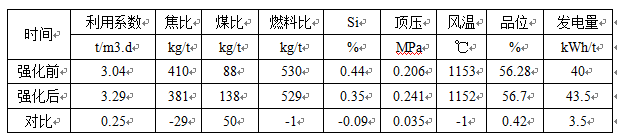 表1 高爐強(qiáng)化前后指標(biāo)對比情況