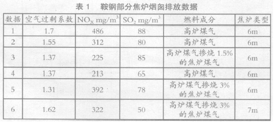 焦?fàn)t是冶金企業(yè)中造成大氣污染最嚴(yán)重的設(shè)備之一。焦?fàn)t排放的污染物成分復(fù)雜,含有一氧化碳、二氧化碳、硫化氫、氰化氫、氮氧化物、二氧化硫、殘氨、酚以及煤塵、焦油等。本文涉及的污染物主要是氮氧化物以及二氧化硫。