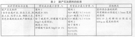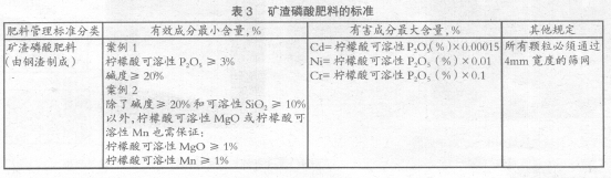 肥料管理法中除規(guī)定了特殊肥料之外,還重新規(guī)定了普通肥料。普通肥料雖然是官方明確規(guī)定的肥料,但還是作為特殊肥料以外的肥料定義。普通肥料中有氮肥、磷酸肥、鉀肥、石灰肥、苦土肥、硅酸肥、錳肥等標(biāo)準(zhǔn)。以鋼鐵渣為原料的普通肥料,目前有礦渣硅酸質(zhì)肥料、副產(chǎn)石灰肥、礦渣磷酸肥的標(biāo)準(zhǔn)(見表1-表3)。