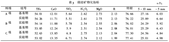 3. 3 燒結(jié)生產(chǎn)技術(shù)指標(biāo)