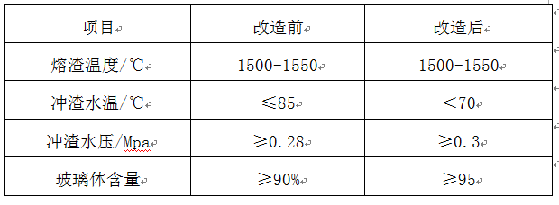 表5:1#1080m³高爐沖渣系統(tǒng)改造前后參數(shù)對(duì)比