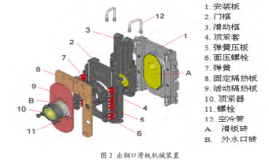 轉(zhuǎn)爐出鋼口滑板擋渣機(jī)構(gòu)采用機(jī)構(gòu)離線整體更換技術(shù),即在調(diào)試架上對(duì)離線機(jī)構(gòu)更換新滑板磚,調(diào)試合格后待用,其安裝更換和使用過程將不影響目前轉(zhuǎn)爐冶煉工藝和操作條件。