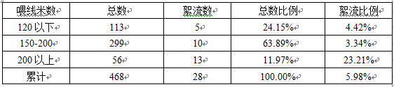 在進(jìn)行精煉鈣處理的統(tǒng)計(jì)數(shù)據(jù)時(shí)發(fā)現(xiàn),硅鈣線加入量在200m以上的爐次共計(jì)為52爐,其中屬于開澆前3爐的有38爐,比例為73.1%。而在統(tǒng)計(jì)的19個(gè)澆次中,出現(xiàn)開澆前3爐絮流的澆次達(dá)7個(gè),比例為36.84%,據(jù)此推斷連鑄中包可能對(duì)鋼水流動(dòng)性,尤其是對(duì)開澆爐次的流動(dòng)性有較大影響。