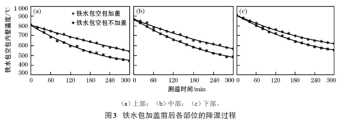 3. 2. 3 加蓋時(shí)間對鐵水包空包保溫效果的影響