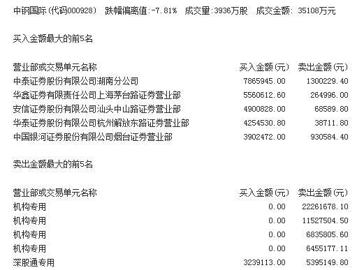 今日,在中鋼國際的賣出前五席位中,4家來自機構,1家來自深港通專用席位,他們分別賣出2226.17萬元、1152.75萬元、683.58萬元、645.52萬元以及539.51萬元,累計賣出金額達到5247萬元,而在該股的買入前五席位中,買入第一中泰證券湖南分公司買入金額僅為786.59萬元,買賣前五席位累計凈賣出中鋼國際2535萬元,資金大幅流出。