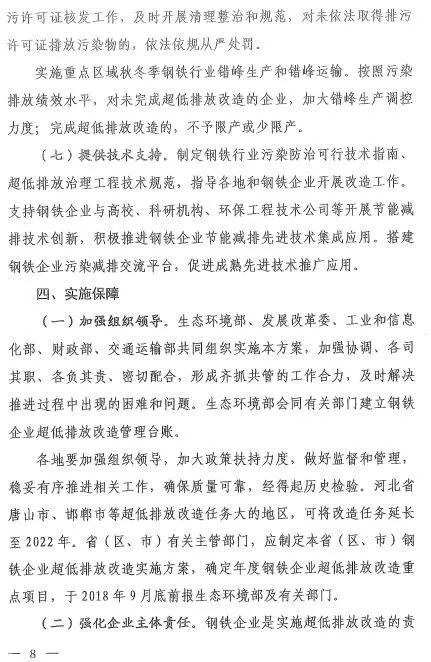 “實(shí)施重點(diǎn)區(qū)域秋冬季鋼鐵行業(yè)錯(cuò)峰生產(chǎn)和錯(cuò)峰運(yùn)輸。按照污染排放績效水平,對(duì)未完成超低排放改造的企業(yè),加大錯(cuò)峰生產(chǎn)調(diào)控力度;完成超低排放改造的,不予限產(chǎn)或少限產(chǎn)。”