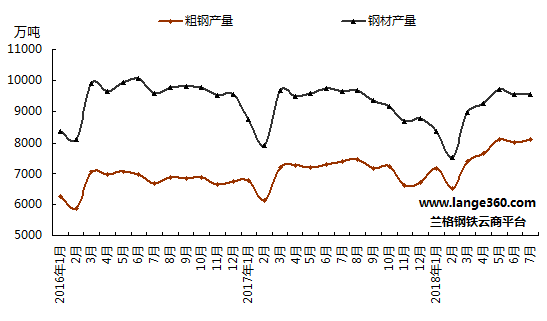 1、7月份粗鋼日產(chǎn)有所回落 后期或繼續(xù)回落