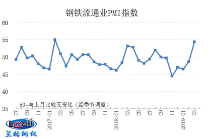 3月份鋼材市場需求釋放較為順暢,鋼鐵流通企業(yè)銷售量指數(shù)和訂單指數(shù)大幅回升至59.3和58.8,較上月分別回升17.9、和17.1個百分點。指數(shù)大幅回升的原因一部分在于今年春季需求準時釋放,另一部分在于上月受春節(jié)因素銷售淡季基數(shù)過低。