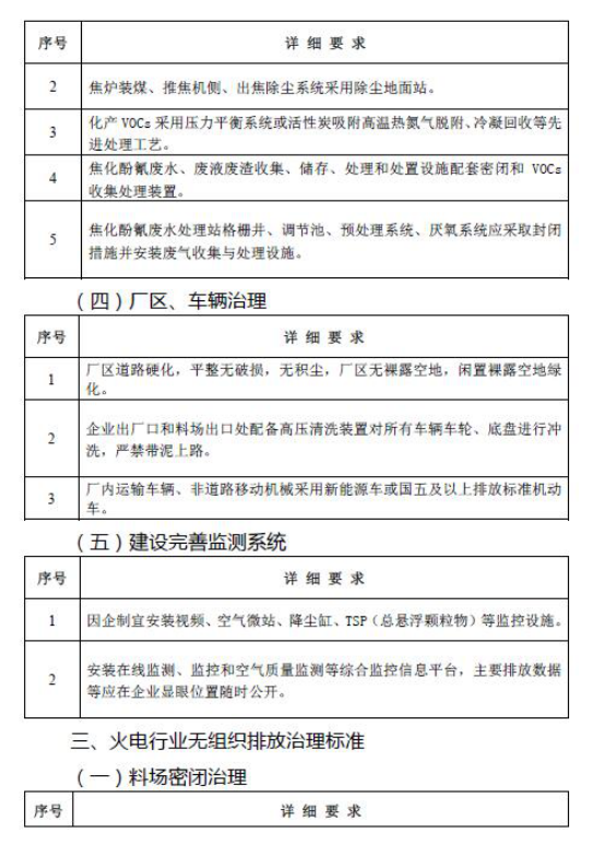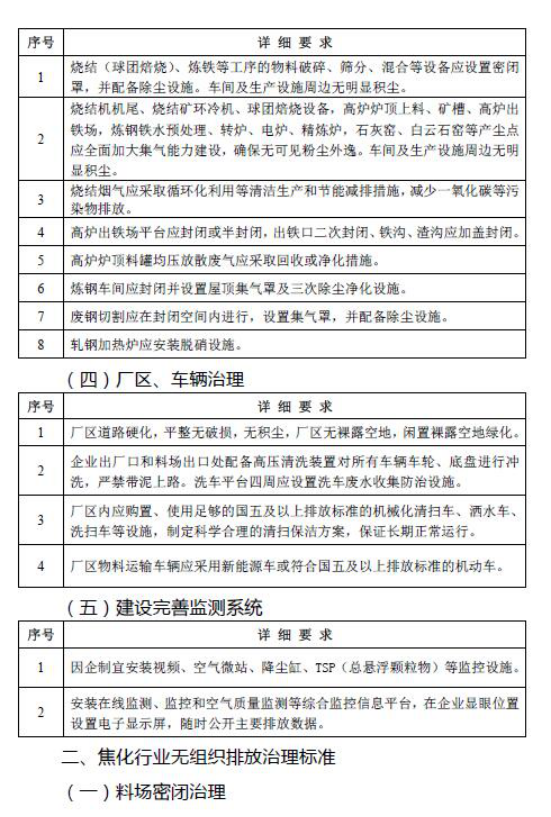 (一)明確治理范圍。2019年10月底前,全省范圍內(nèi)鋼鐵、水泥、火電、焦化、鑄造、耐火材料、有色冶煉、磚瓦窯等所有涉及無(wú)組織排放的工業(yè)企業(yè),完成物料運(yùn)輸、生產(chǎn)工藝、堆場(chǎng)環(huán)節(jié)的無(wú)組織排放深度治理,全面實(shí)現(xiàn)“五到位、一密閉”。