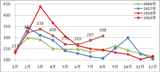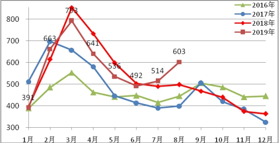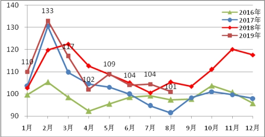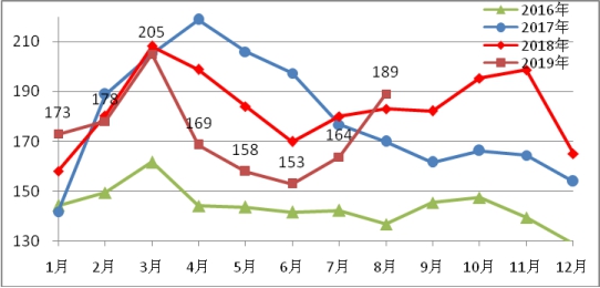 圖3各城市2019年8月比上月庫存增減情況
