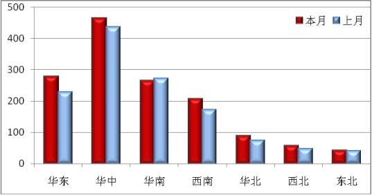 本月冷軋卷板庫存環(huán)比增加的地區(qū)有6個,其中增加較多的地區(qū)有天津,庫存環(huán)比增加0.2萬噸,其中鋼材市場減少0.1萬噸,港口增加0.3萬噸;上海庫存環(huán)比增加0.1萬噸,其中鋼材市場增加0.4萬噸,港口減少0.3萬噸;廣州庫存環(huán)比增加0.8萬噸,全部為鋼材市場增加量;南昌庫存環(huán)比增加0.2萬噸;武漢1.9萬噸;本月庫存環(huán)比減少的地區(qū)有9個,其中減少較多的地區(qū)有鄭州,庫存環(huán)比減少1.2萬噸,長沙0.1萬噸,昆明0.1萬噸,成都0.7萬噸,重慶1.5萬噸,西安0.7萬噸。