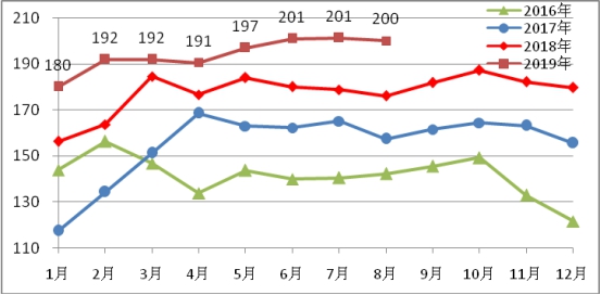 熱軋卷板本月庫存189萬噸,比上月增加25萬噸,上升15.5%(具體見圖4)。其中鋼材市場庫存172萬噸,比上月增加25萬噸,港口庫存18萬噸,比上月增加1萬噸。