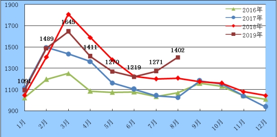 圖2 各地區(qū)2019年8月比上月庫存增減情況
