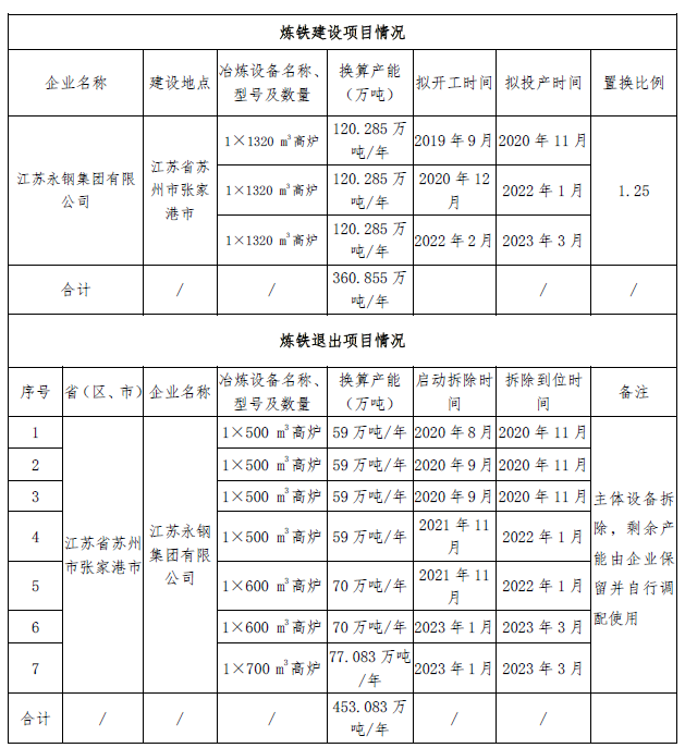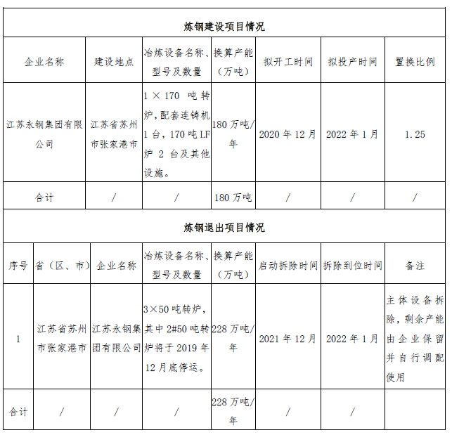 按照《國務(wù)院關(guān)于化解產(chǎn)能嚴(yán)重過剩矛盾的指導(dǎo)意見》、《國務(wù)院關(guān)于鋼鐵行業(yè)化解過剩產(chǎn)能實(shí)現(xiàn)脫困發(fā)展的意見》和《鋼鐵行業(yè)產(chǎn)能置換實(shí)施辦法》要求,現(xiàn)將江蘇永鋼集團(tuán)有限公司鋼鐵產(chǎn)能置換方案予以公示,歡迎社會公眾進(jìn)行監(jiān)督。公示期為2019年10月14日至2019年10月20日。如有異議,請以書面形式向江蘇省工業(yè)和信息化廳反映情況。聯(lián)系電話:025-83398236(業(yè)務(wù)咨詢)、025-69652843(駐廳紀(jì)檢監(jiān)察組)。