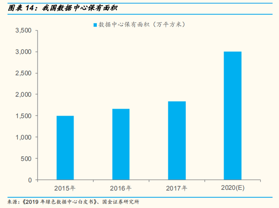 按照《2019 年綠色數(shù)據(jù)中心白皮書》,當(dāng)前中國(guó)數(shù)據(jù)中心每年新增投資規(guī)模在 1000 億左右,包含基礎(chǔ)設(shè)施產(chǎn)品、服務(wù)器、網(wǎng)絡(luò)存儲(chǔ)、網(wǎng)絡(luò)設(shè)備等。預(yù)計(jì) 2020 年中國(guó)規(guī)模以上的數(shù)據(jù)中心保有量將超過(guò) 8 萬(wàn)個(gè),總面積將超過(guò) 3000 萬(wàn)平方米。