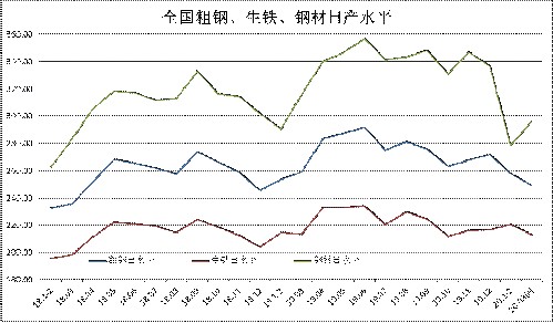 本月重點統(tǒng)計鋼鐵企業(yè)累計平均日產,粗鋼182.41萬噸,環(huán)比下降2.06%、同比下降2.58%;生鐵169.48萬噸,環(huán)比下降3.10%、同比增長1.27%;鋼材176.60萬噸,環(huán)比下降1.66%、同比增長0.02%。