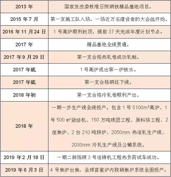 日照鋼鐵精品基地:2013年3月1日,國(guó)家發(fā)展改革委下發(fā)《國(guó)家發(fā)展改革委關(guān)于山東鋼鐵集團(tuán)有限公司日照鋼鐵精品基地項(xiàng)目核準(zhǔn)的批復(fù)》正式核準(zhǔn)日照鋼鐵精品基地項(xiàng)目。該項(xiàng)目年產(chǎn)鐵810萬(wàn)噸、鋼850萬(wàn)噸、鋼材790萬(wàn)噸,主要工藝有原料場(chǎng)、燒結(jié)、球團(tuán)、高爐、轉(zhuǎn)爐、精煉、連鑄、熱連軋機(jī)組、爐卷軋機(jī)、寬厚板軋機(jī)、酸軋、熱鍍鋅、電鍍鋅等;配套設(shè)施包括1個(gè)30萬(wàn)噸級(jí)鐵礦石碼頭接卸泊位,4個(gè)1萬(wàn)噸級(jí)和3個(gè)4萬(wàn)噸級(jí)雜貨泊位,2臺(tái)25兆瓦高爐余壓發(fā)電機(jī)組,2臺(tái)350兆瓦超臨界火電發(fā)電機(jī)組等。