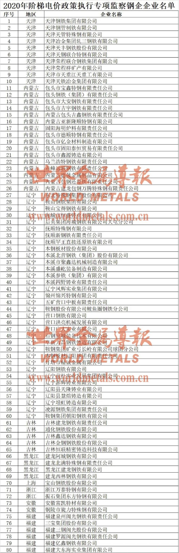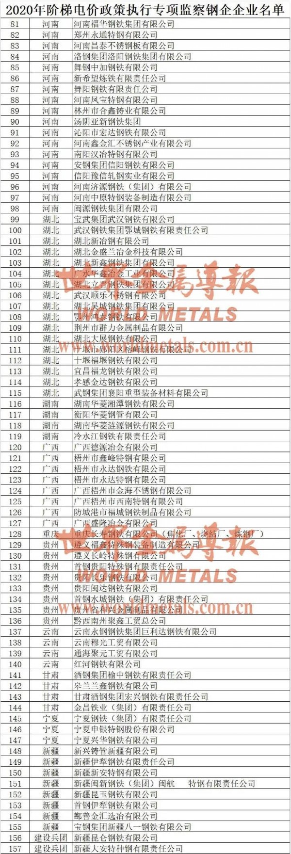 其中,階梯電價(jià)政策執(zhí)行專(zhuān)項(xiàng)監(jiān)察157家鋼鐵企業(yè)名單如下: