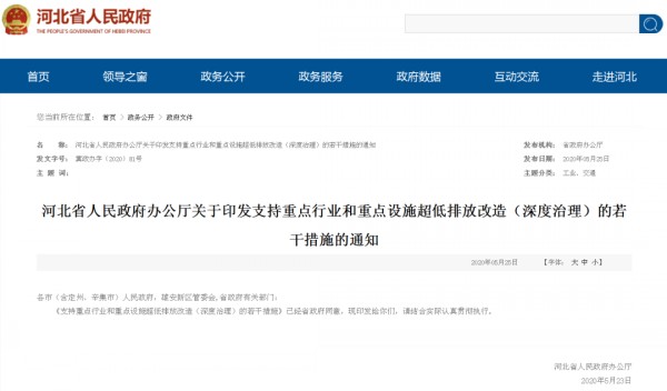 為支持鋼鐵、焦化、燃煤電廠、水泥、平板玻璃、陶瓷重點(diǎn)行業(yè)和鍋爐、垃圾焚燒發(fā)電重點(diǎn)設(shè)施超低排放改造(深度治理),2020年5月25日,河北省人民政府辦公廳印發(fā)了《支持重點(diǎn)行業(yè)和重點(diǎn)設(shè)施超低排放改造(深度治理)若干措施的通知》(以下簡稱《若干措施》),現(xiàn)解讀如下。